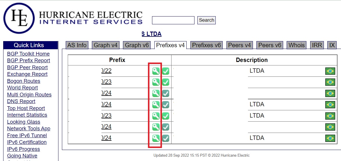 Podemos conferir se o seu AS esta com essa opção ativa no site da Hurricane.