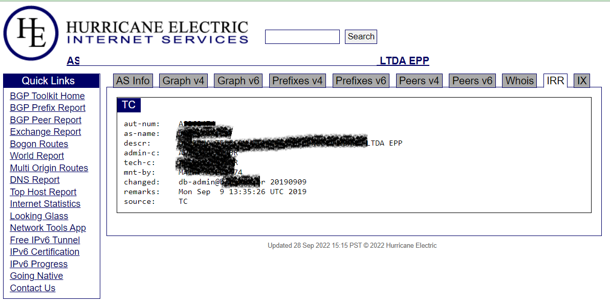 Para saber se seu provedor tem o IRR cadastrado, basta acessar o Hurricane: