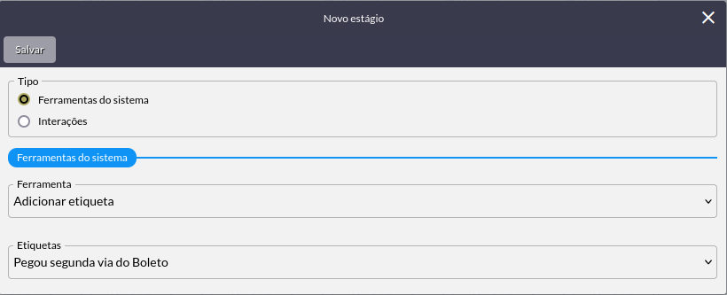 Mensagem > Integração > Adicionar Etiqueta > Fluxo: Encerrar atendimento.